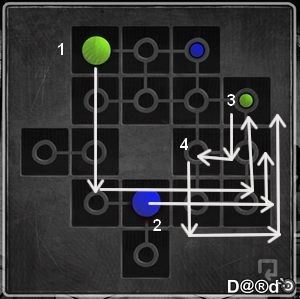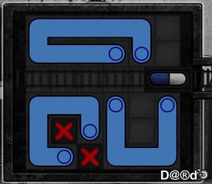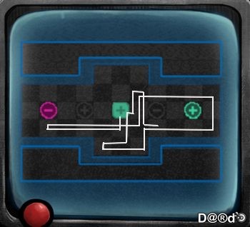 Cogemos el boleto y mapa al mando de consola. En la máquina ponemos la palanca y la moneda y jugamos. Debemos empujar las fichas verdes y rojas para ponerlas en sus respectivas casillas: cogemos por abajo la ficha roja y la llevamos arriba del rodo a la derecha de la parte central; vamos a la verde, nos ponemos detrás, la empujamos hasta que podamos bajar, nos ponemos debajo, la empujamos, nos ponemos a su derecha y la colocamos; vamos a buscar la roja por debajo, la empujamos hasta que queda junto a su lugar, la cogemos por abajo y la colocamos.