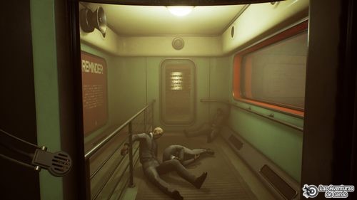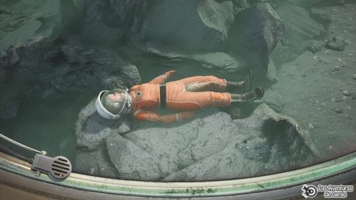 Por detrás seguimos adelante hasta un depósito de agua y al ir mirándolo para intentar llenar nuestra cantimplora tenemos una visión que nos aclara un poco la situación. Estamos dentro de la nave, acabamos de despertar de la hibernación, pulsamos el asa para incorporarnos y vemos que los demás ya están despiertos. Pulsamos en los hierros para levantarnos, la doctora Marit nos habla y los demás comentan la situación.