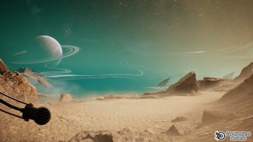 Encendemos el vehículo, vamos adelante, frase 1 y salimos (F) del rover. Derecha, vamos al precipicio y usamos el telemetro para hacer “zoom” en el “zona de aterrizaje”. Frase 1, regresamos al rover y seguimos el camino (siempre girando a la izquierda) hasta llegar a la “zona de aterrizaje”. Seguimos adelante, al fondo giramos a la derecha y atravesamos una zona de agua. Bajamos del rover, miramos el cielo y vemos caer una nave de rescate que estalla. (si no aparece mirar el cielo varias veces y si no la vemos no pasa nada). Vamos hasta la nave, frase 2 y lo miramos todo.