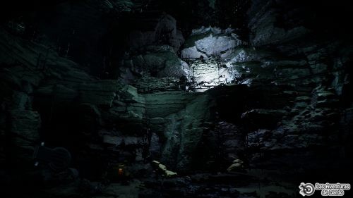 Seguimos por la izquierda y todo adelante hasta que caemos. Avanzamos por el camino de la izquierda, al final saltamos al suelo y derecha y adelante bajando una cuesta y seguimos al fondo. Encendemos el rastreador, pasamos entre las rocas, frase 2, todo adelante y encontramos su mochila. Seguimos los recovecos, al final, a la izquierda, lo encontramos, frase 1 y pulsamos en él. Le hablamos mirando su brazo, frase 1, lo movemos (W) y pulsamos en su pecho.