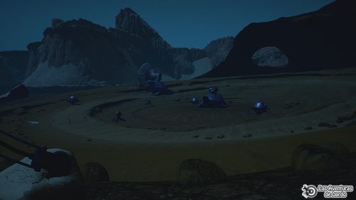 En el centro del cráter hay una estructura metálica en forma de aguja y vamos hacia ella. De frente damos media vuelta, bajamos, giramos a la derecha y seguimos al fondo llegando a una excavación, donde miramos el taladro. De nuevo pasamos por tercera vez a tener una visión de la nave antes, aparecemos frente a un radar y nuestros compañeros nos hablan de lo que han encontrado en la excavación. Miramos arriba a la izquierda al monitor P01 y pulsamos el nivel superior derecho diciendo la primera frase.