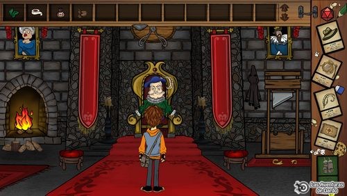 Hablamos con el Lord de todo, nos pide una prueba de valía y vemos las animaciones. Lo miramos todo, cogemos el bigote y, con el mapa, vamos a la celda y cogemos la piedra. Vamos al mercado y, por abajo a la derecha, pasamos a una calle. Nos ponemos la lente, lo miramos todo, nos ponemos el sombrero y entramos en la taberna, pero nos echan a la calle. Nos ponemos la lupa y hablamos con el chico del establo, Ronnie, de todo. Seguimos al fondo.